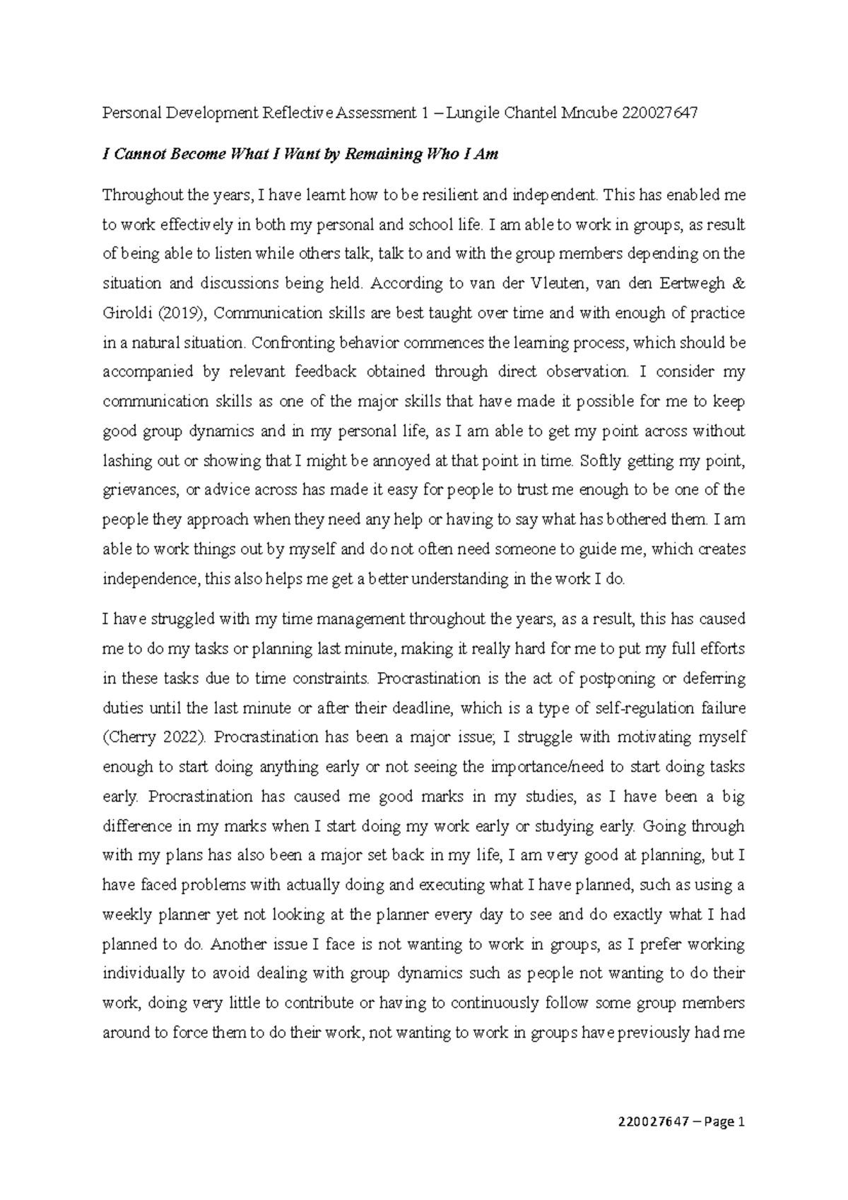 Personal Growth Reflections - ASSIGNMENT ESSAY - Studocu
