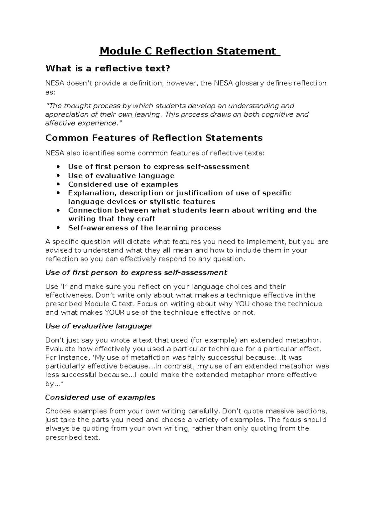 Reflection Statement Example | English (Extension 2) - Year 12 HSC ...
