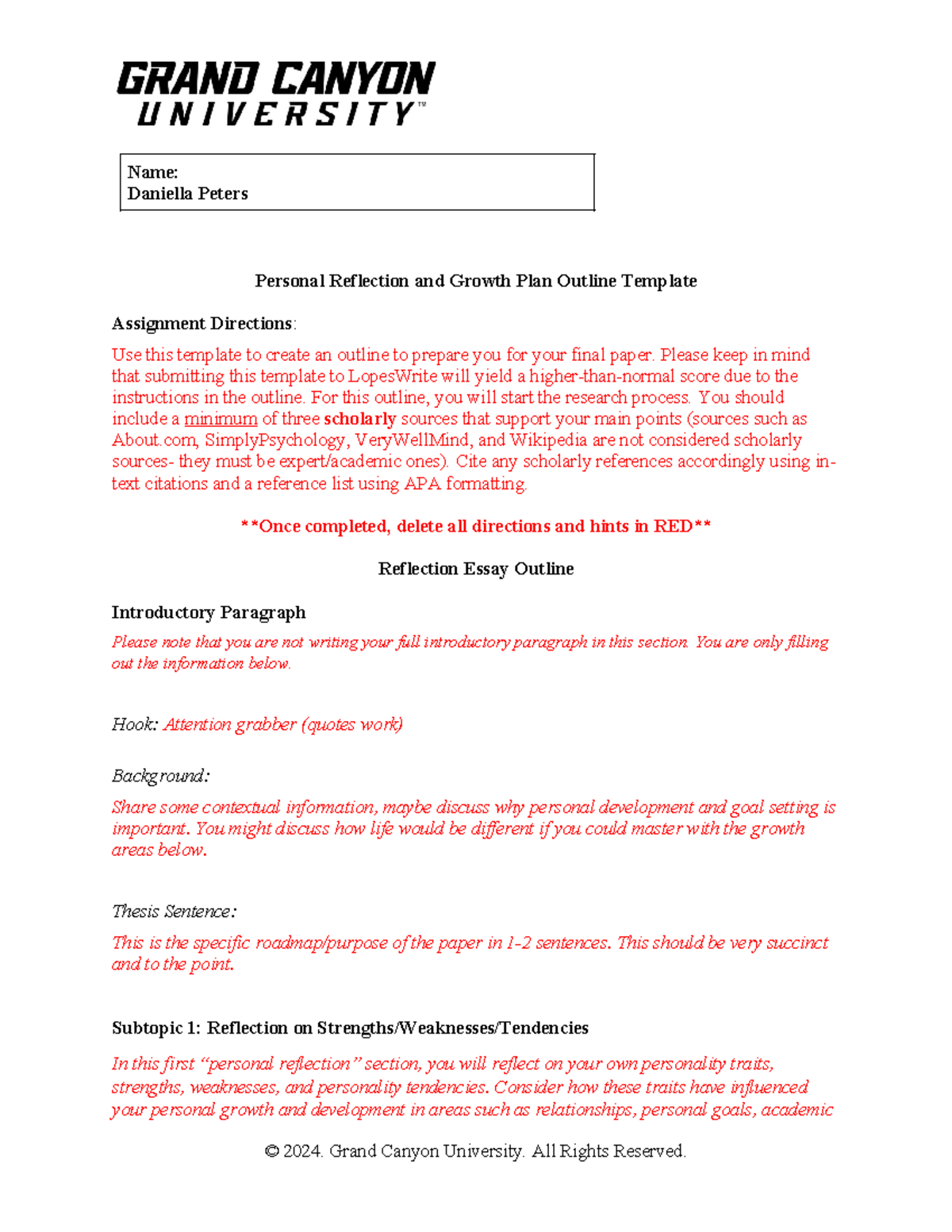 Personal Reflection & Growth Plan Outline Template - PSY-255-RS-T3 ...