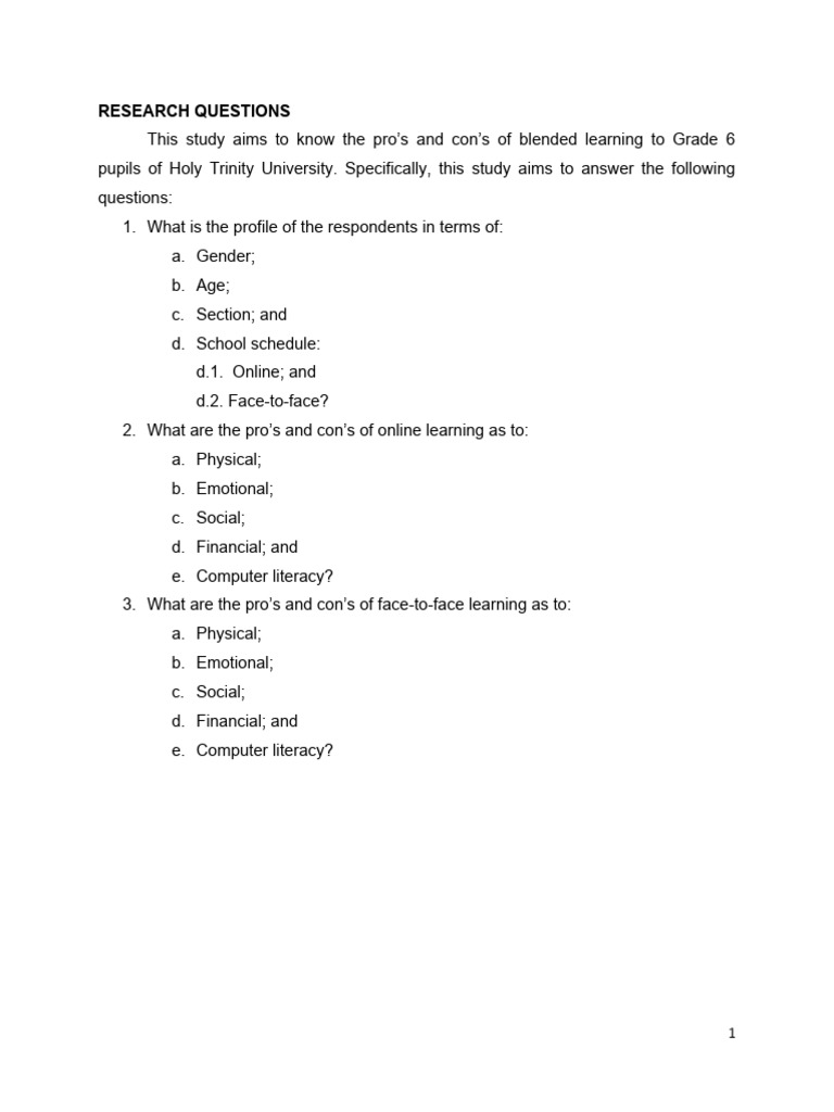 Statement of The Problem-Resarch Methodology-Handout | Exercises ...