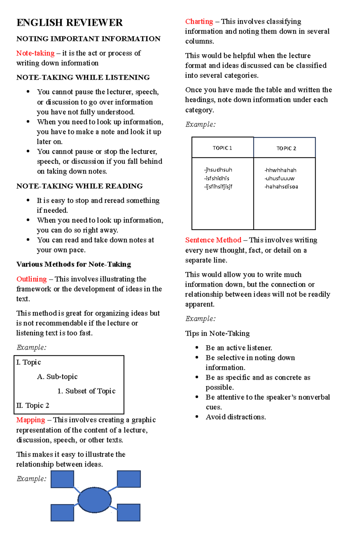 English 10 Reviewer - ENGLISH REVIEWER NOTING IMPORTANT INFORMATION ...