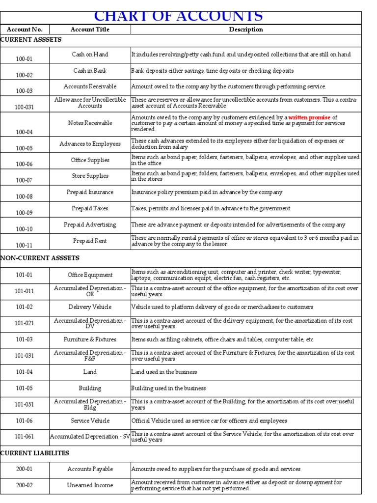 Sample Service Based Business Chart of Accounts | Download Free PDF ...