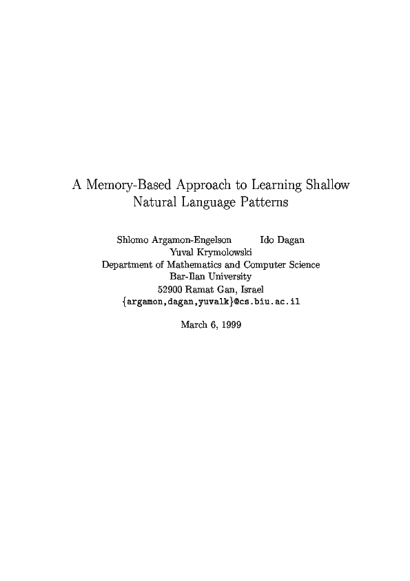 (PDF) A Memory-Based Approach to Learning Shallow Natural Language Patterns
