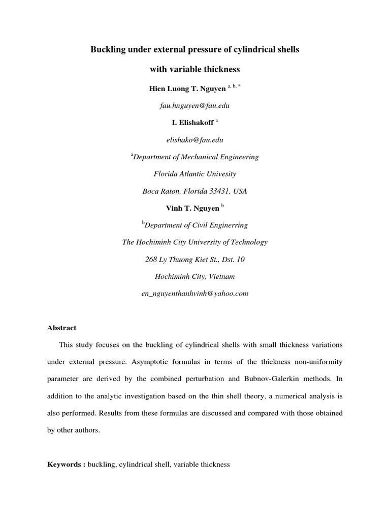 Buckling of Cylindrical Shells with Thickness Variations | PDF