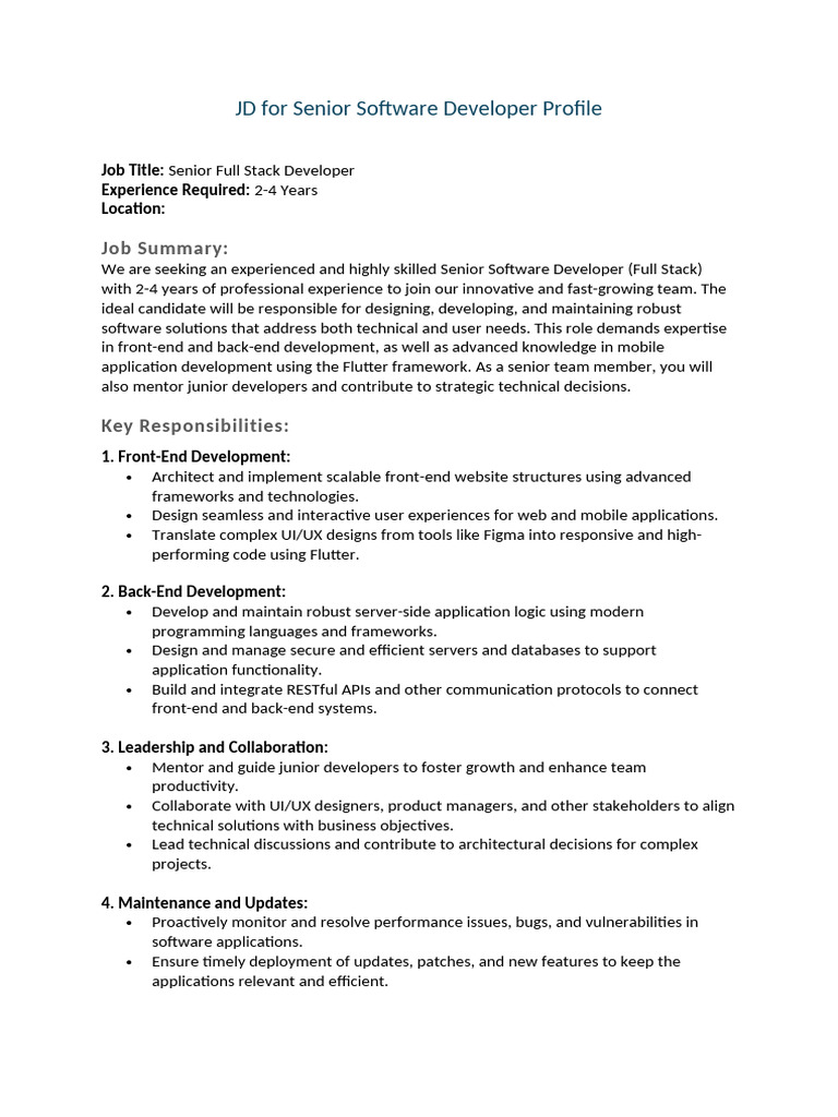 JD Senior Software Developer Profile | PDF | Software Development ...