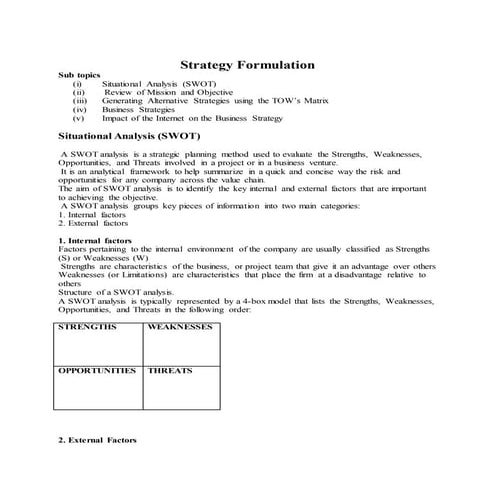 Strategy Formulation | PDF | Swot Analysis | Strategic Management