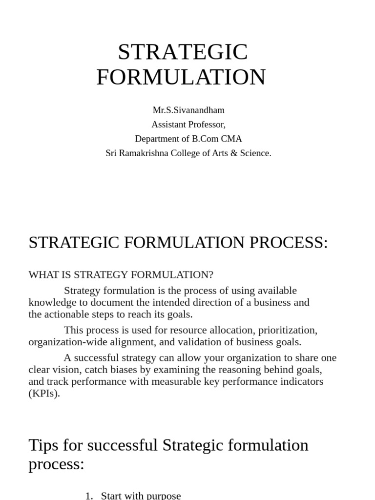 Strategy Formulation and Planning Guide | PDF | Strategic Management ...