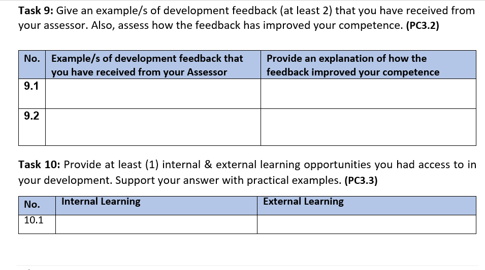 Solved Task 9: Give an example/s of development feedback (at | Chegg.com