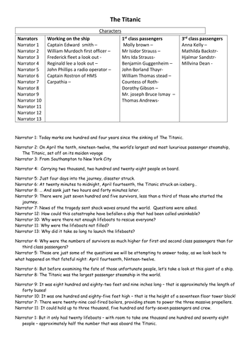 titanic play script | Teaching Resources