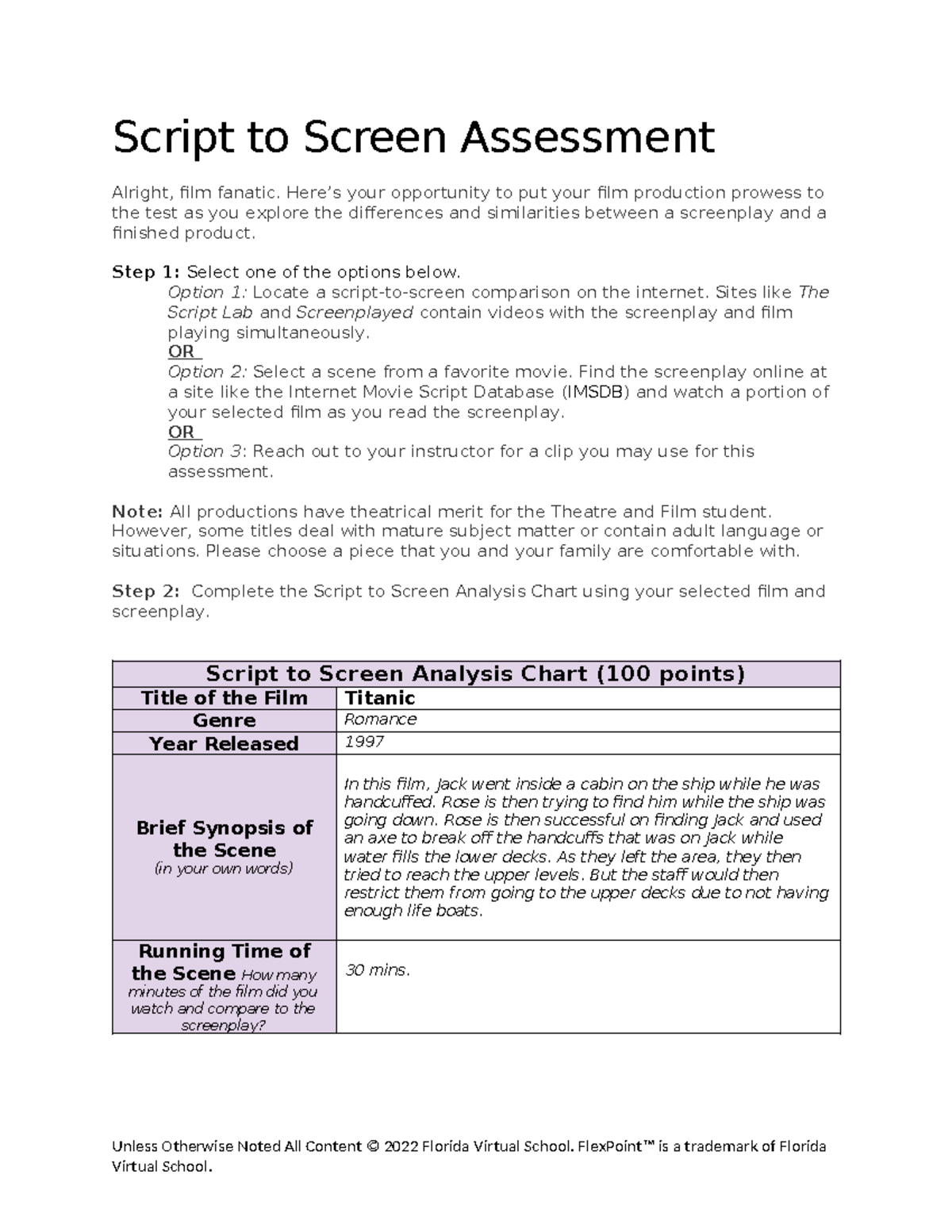 Script to Screen Assessment for Film Studies: Analyzing Titanic Scene ...