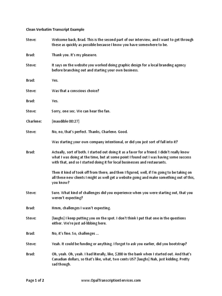 Interview Transcript Example Clean Verbatim | PDF