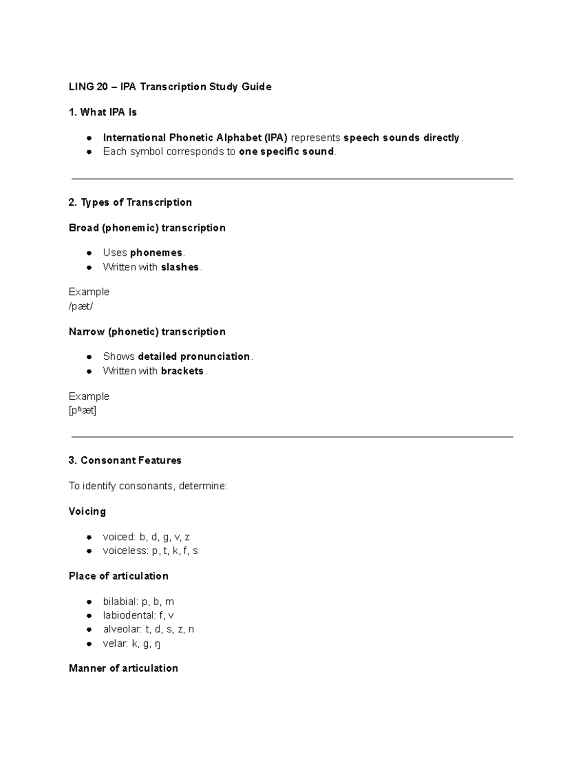 LING 20 IPA Transcription Study Guide: Sounds & Symbols - Studocu