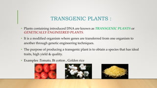 TRANSGENIC PLANTS OR GENETICALLY MODIFIED PLANTS .pptx