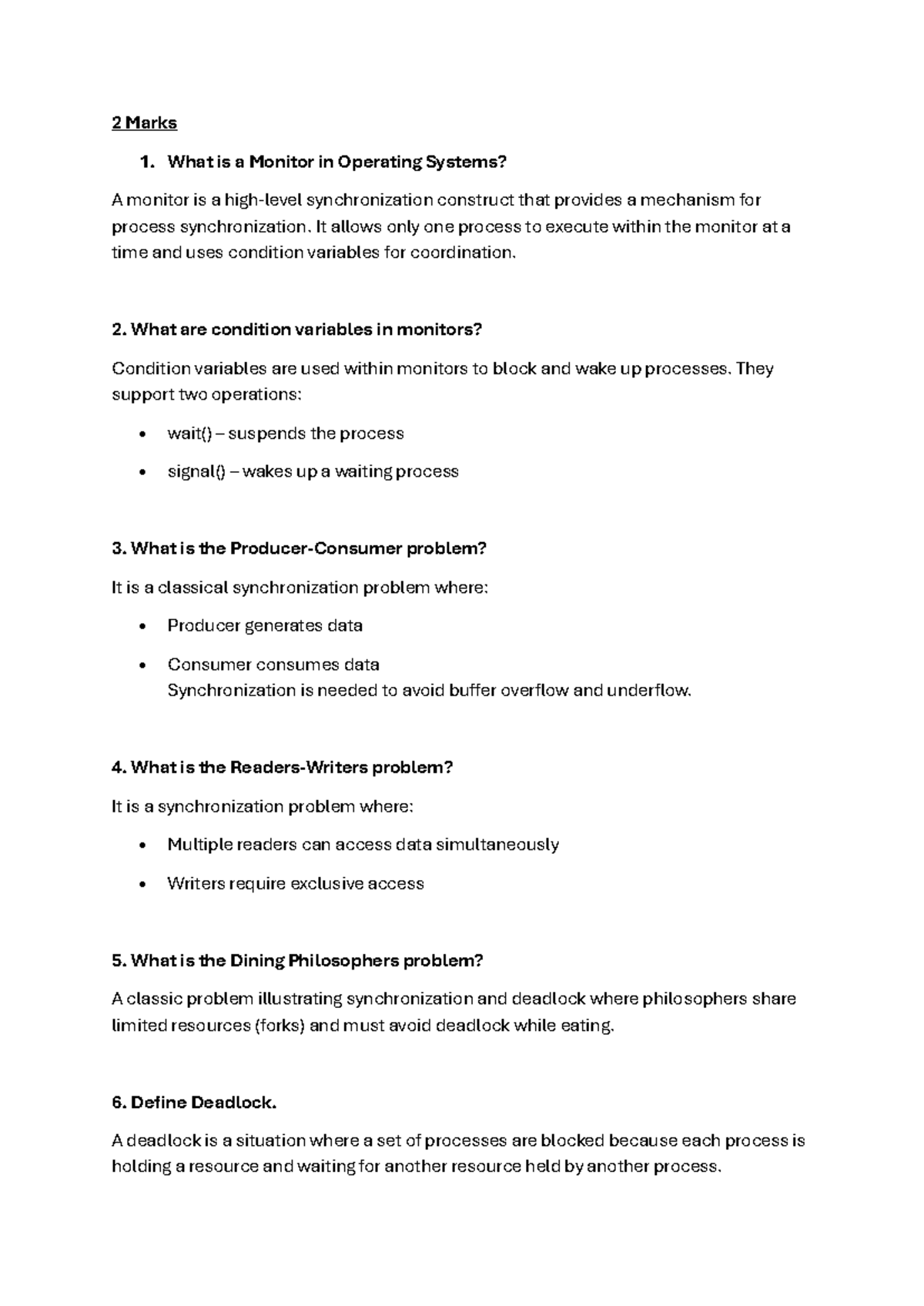 Operating Systems (CS101) - Monitors, Deadlocks & Synchronization - Studocu