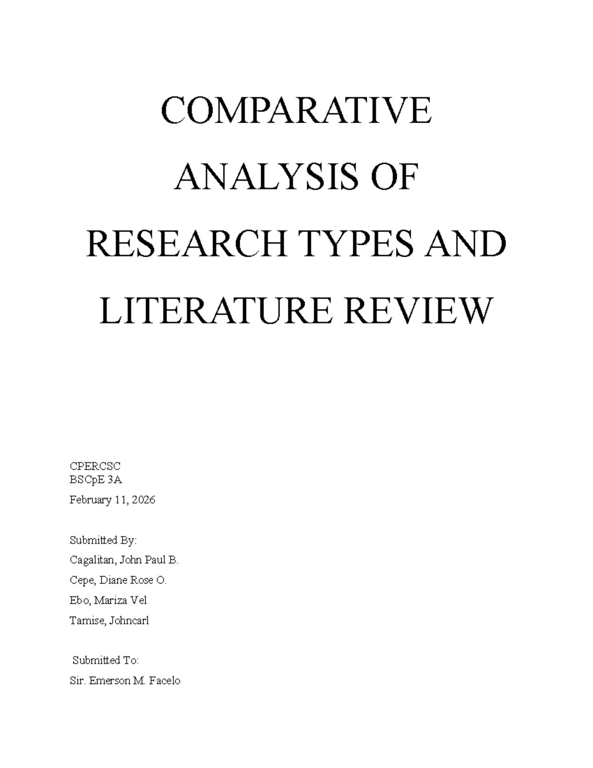 Comparative Analysis of Research Types and Literature Review CPERCSC ...