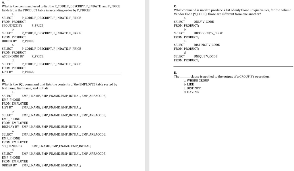 Solved A. What is the command used to list the P CODE, P | Chegg.com