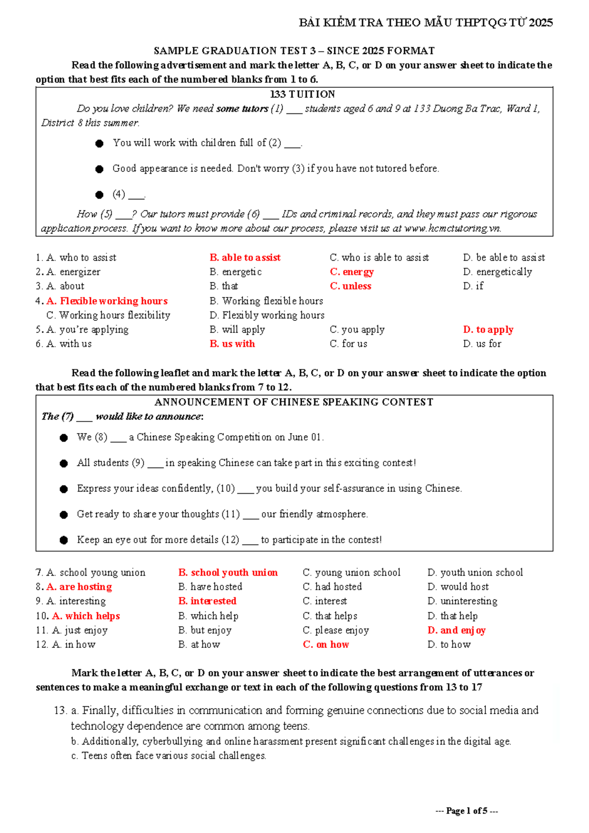 BÀI KIỂM TRA THEO MẪU THPTQG TỪ 2025: SAMPLE GRADUATION TEST 3 ...