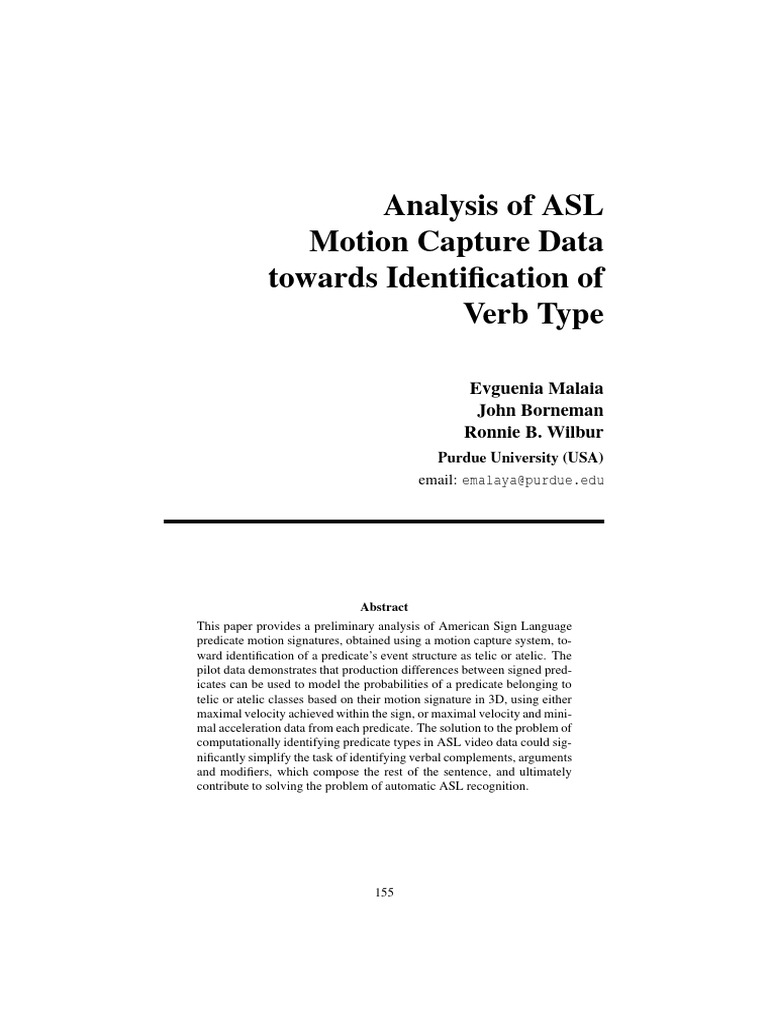 Analysis of ASL Motion Capture Data Towards Identification of Verb Type ...
