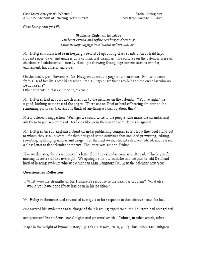 Asl 535 Case Study Analysis 3 | PDF | Hearing Loss | American Sign Language