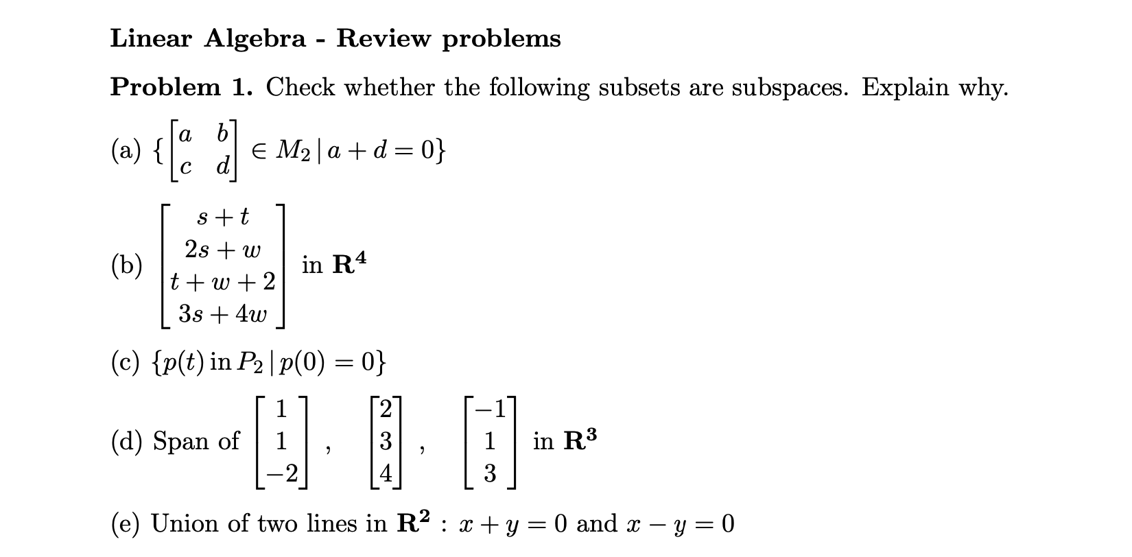 Solved Linear Algebra - Review problems Problem 1. Check | Chegg.com