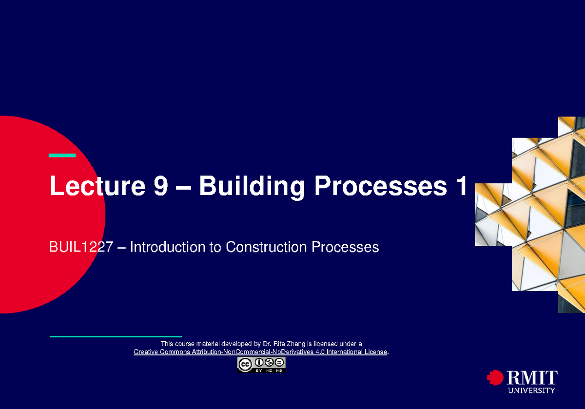 Lecture 9: Building Processes 1 - BUIL1227 Construction Overview - Studocu