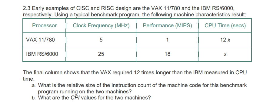 Solved 2.3 Early examples of CISC and RISC design are the | Chegg.com