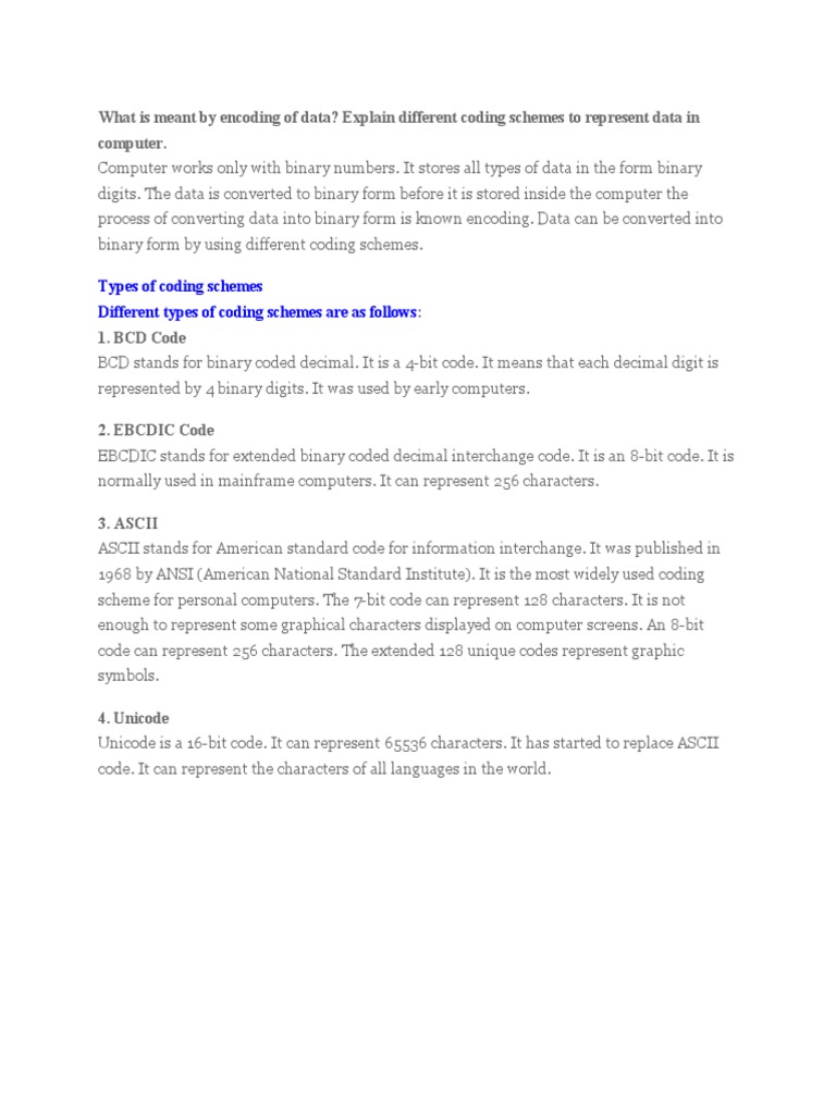 Different types of Coding Schemes to represent data - The coding scheme ...