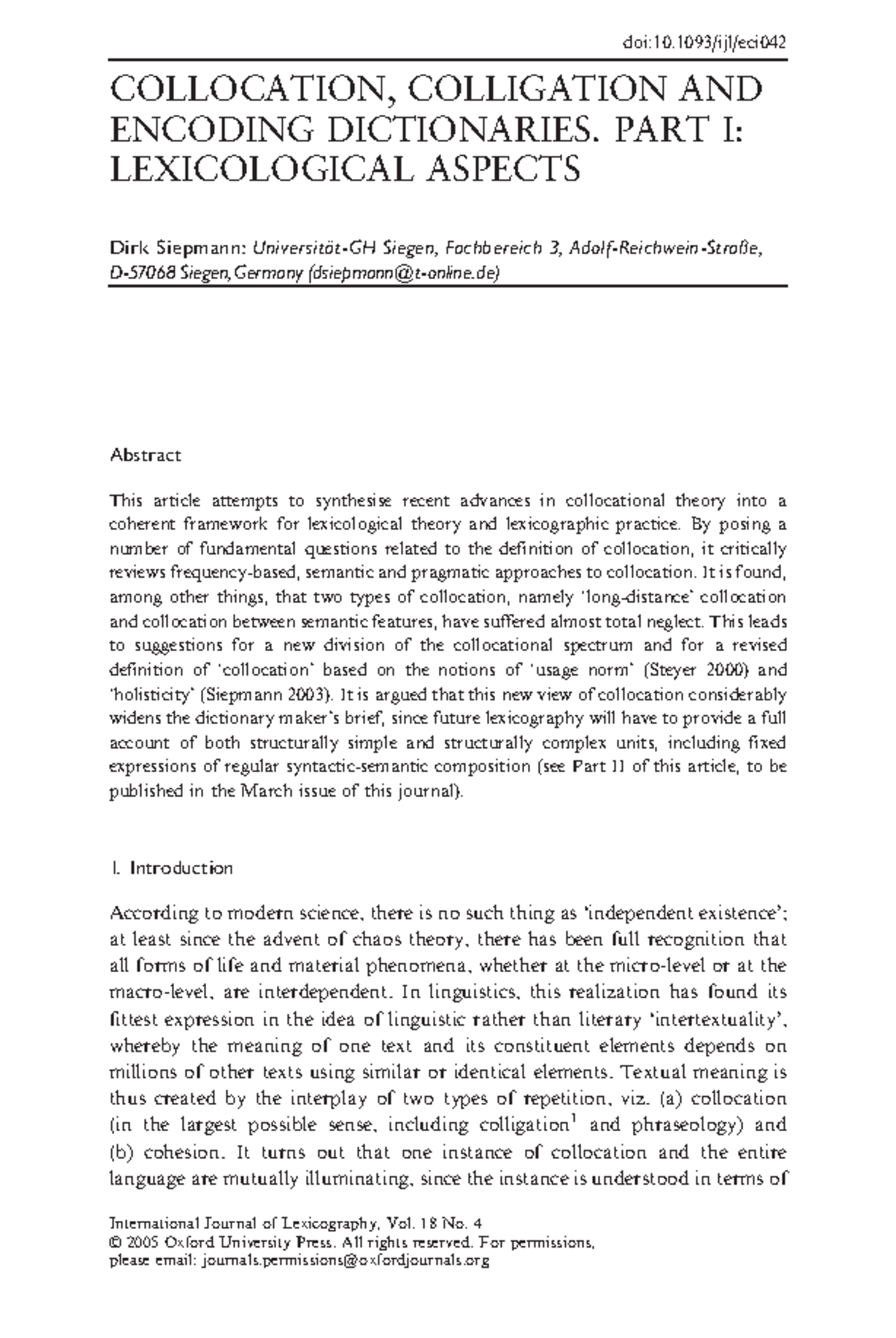 (PDF) Collocation, Colligation and Encoding Dictionaries. Part I ...