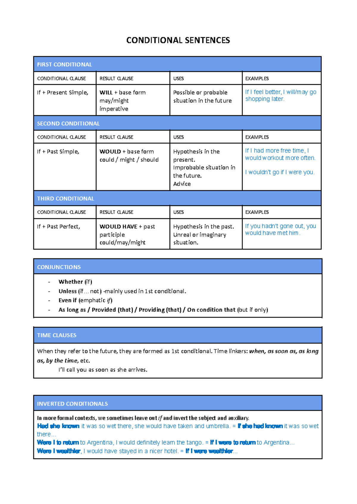 Advanced Conditional Sentences and Their Uses: Overview and Examples ...