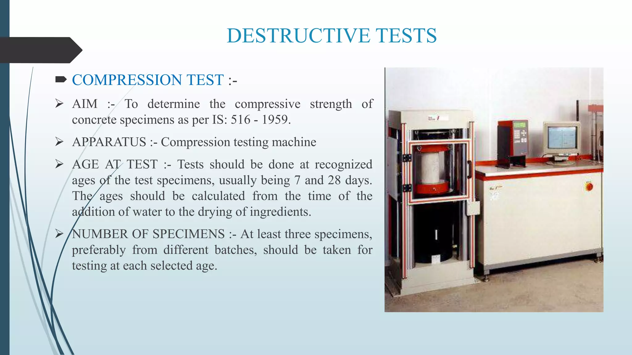 DESTRUCTIVE AND NON-DESTRUCTIVE TEST OF CONCRETE | PPTX