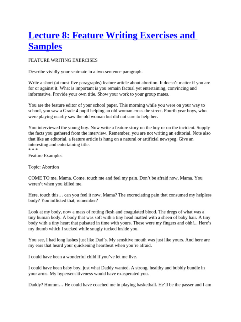 Lesson 3 Feature Writing Exercises - Lesson 3: Feature Writing ...