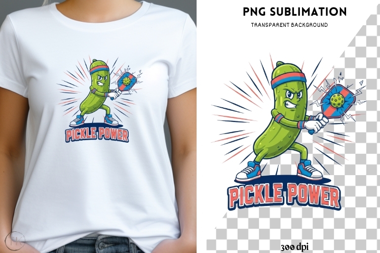 Pickle Power PNG | Funny Pickleball Design | Cartoon Pickle