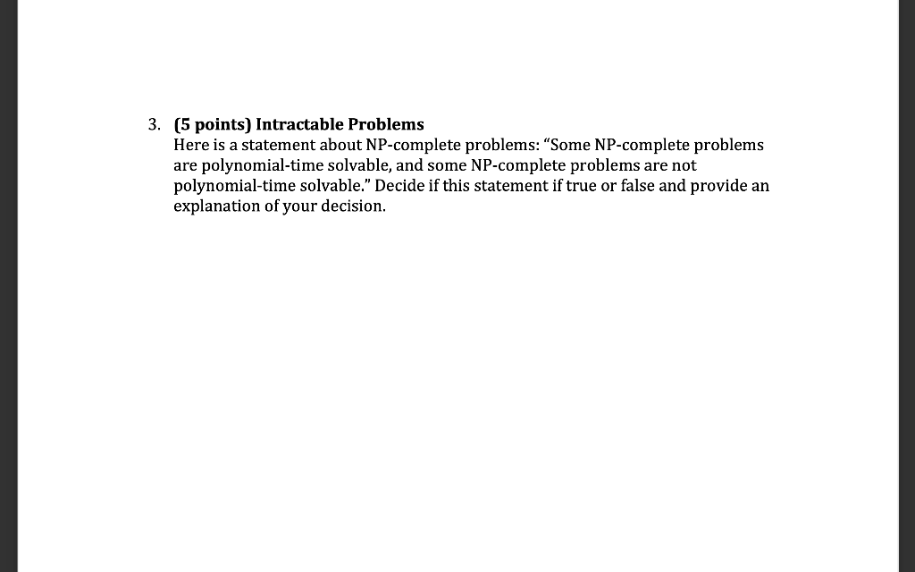 Solved 3. 5 points) Intractable Problems Here is a statement | Chegg.com