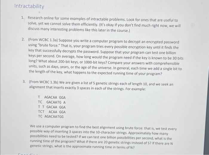 Solved 1. Research online for some examples of intractable | Chegg.com