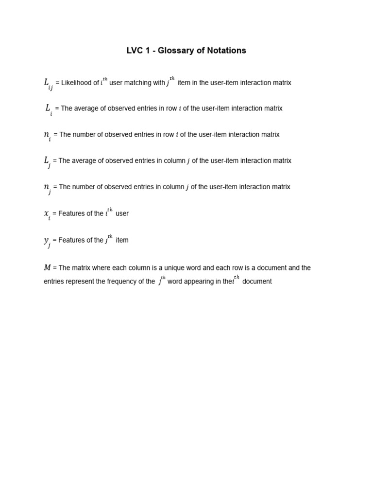 LVC 1 Notation Glossary | PDF