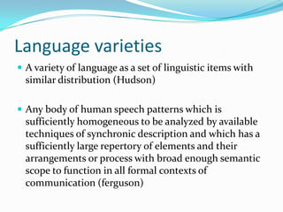 Language varieties| Language Variations in Sociolinguistics| Dialect ...