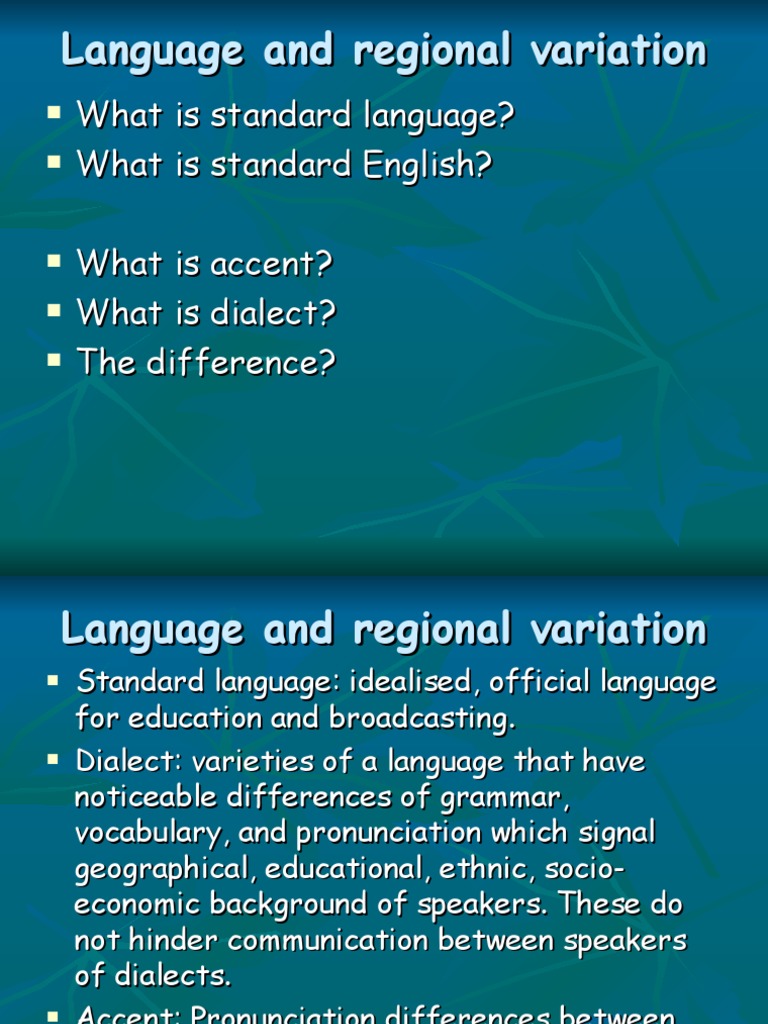 Language Variation/Dialects - Teaching Linguistics and English Language ...