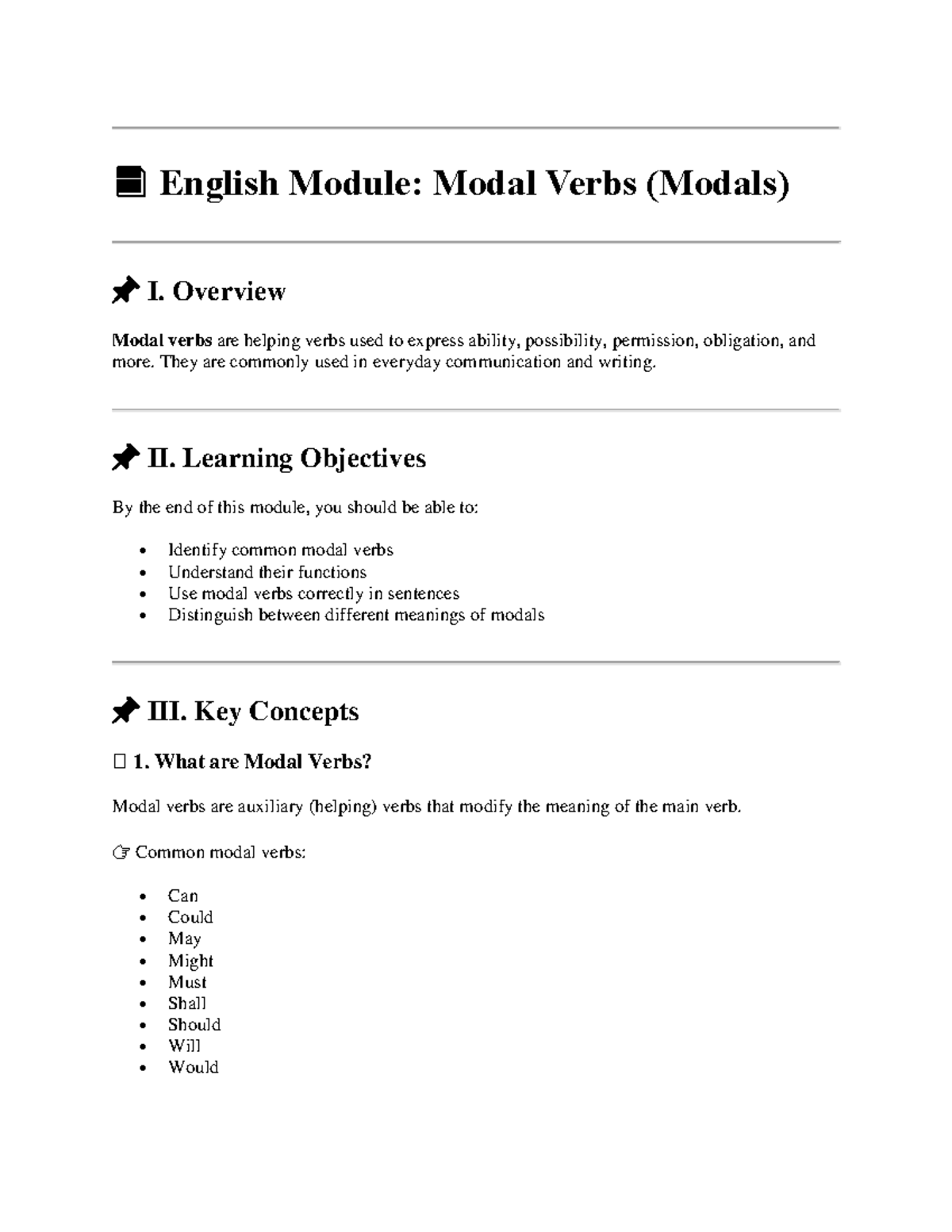 Modals Must and Can: Essential Study Notes for English Learners - Studocu