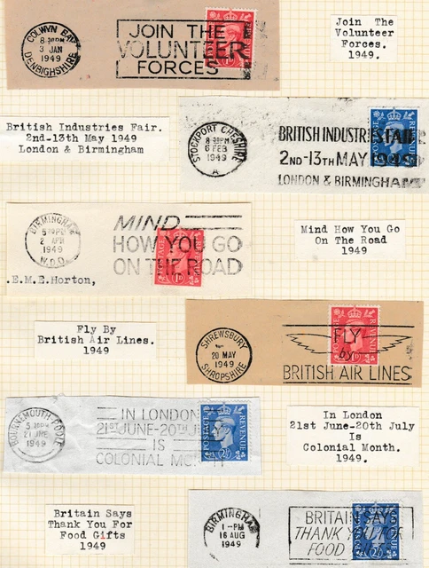 GB GEORGE VI Examples of Slogan Postmarks, all from 1949 All readable ...