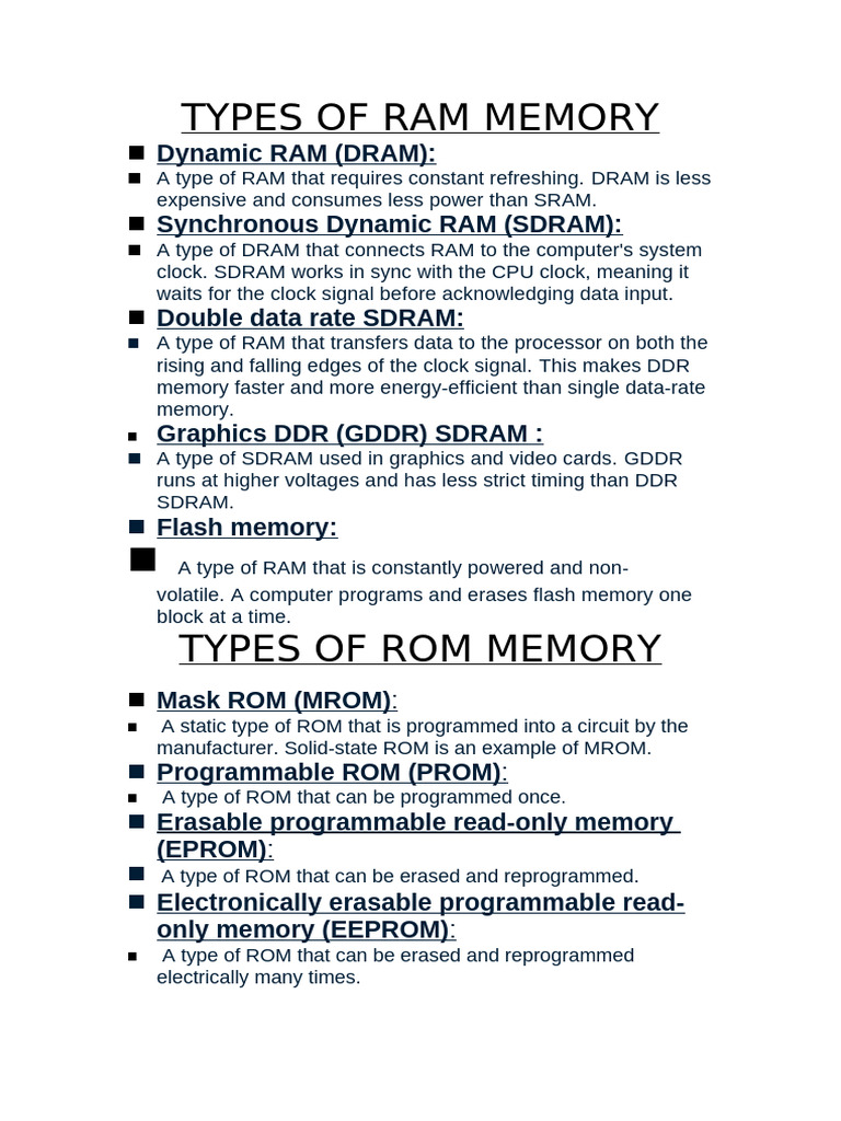 Types Of Computer Memory Notes Pdf - Free Printable Download