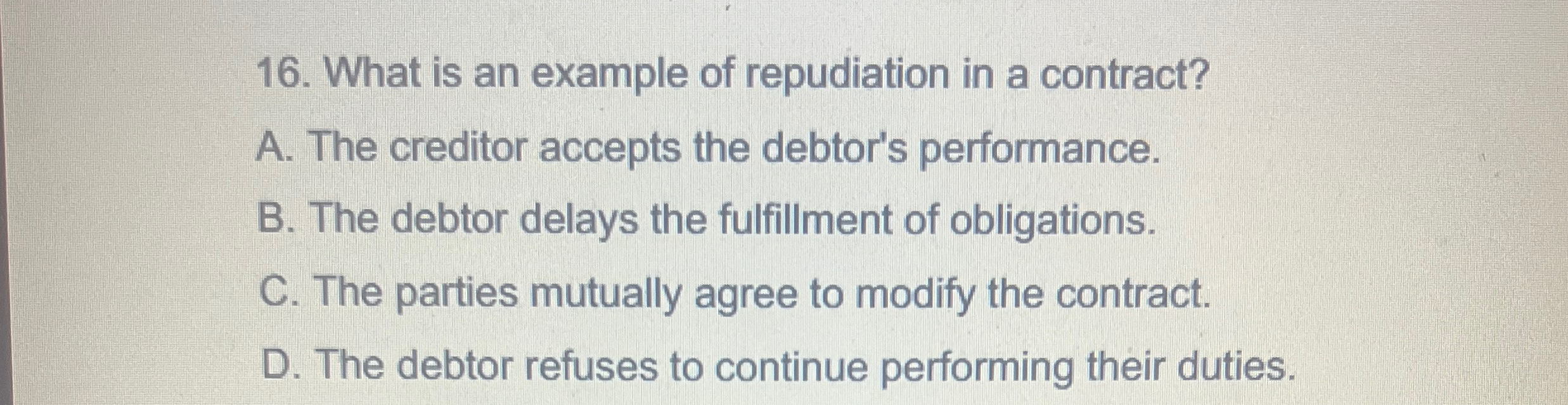Solved What is an example of repudiation in a contract?A. | Chegg.com