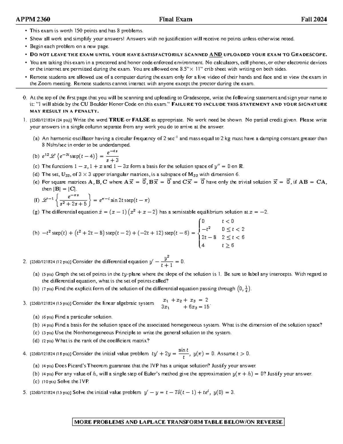 APPM 2360 Final Exam Practice - Fall 2024 Guide - Studocu
