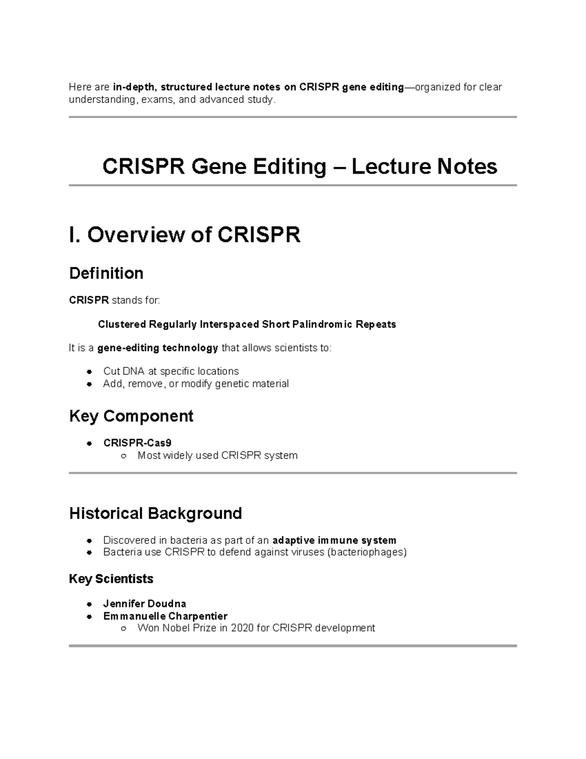 CRISPR Gene Editing Lecture Notes: Key Concepts & Exam Prep - Studocu