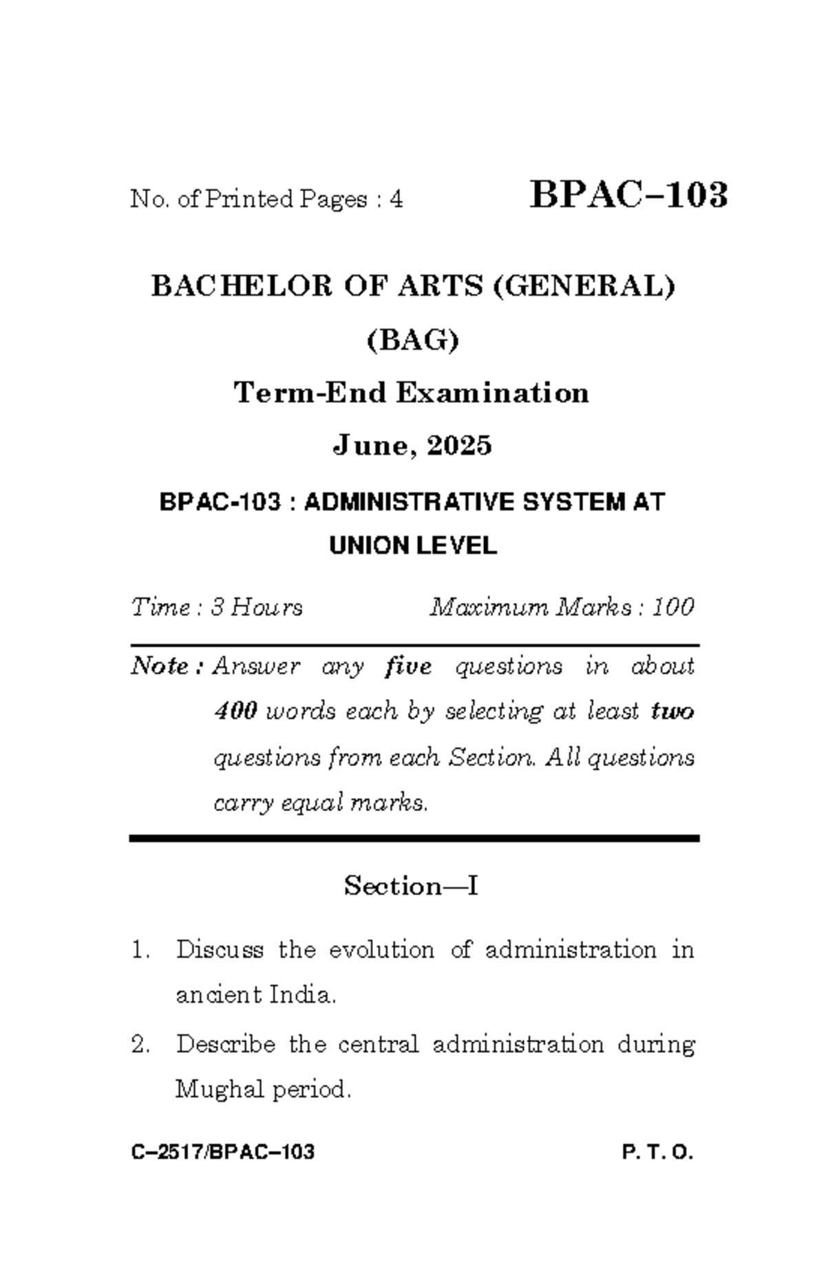 BPAC-103 - Administrative System at Union Level: Exam Prep Notes - Studocu