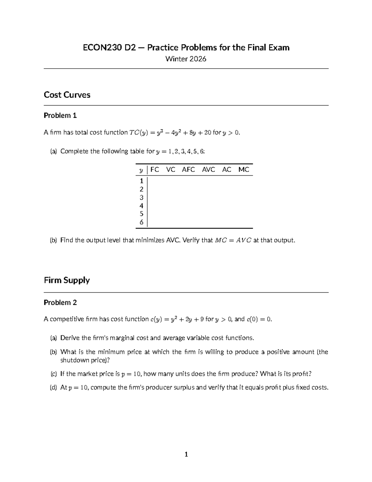ECON230 D2 Final Exam Practice Problems Winter 2026 - Studocu