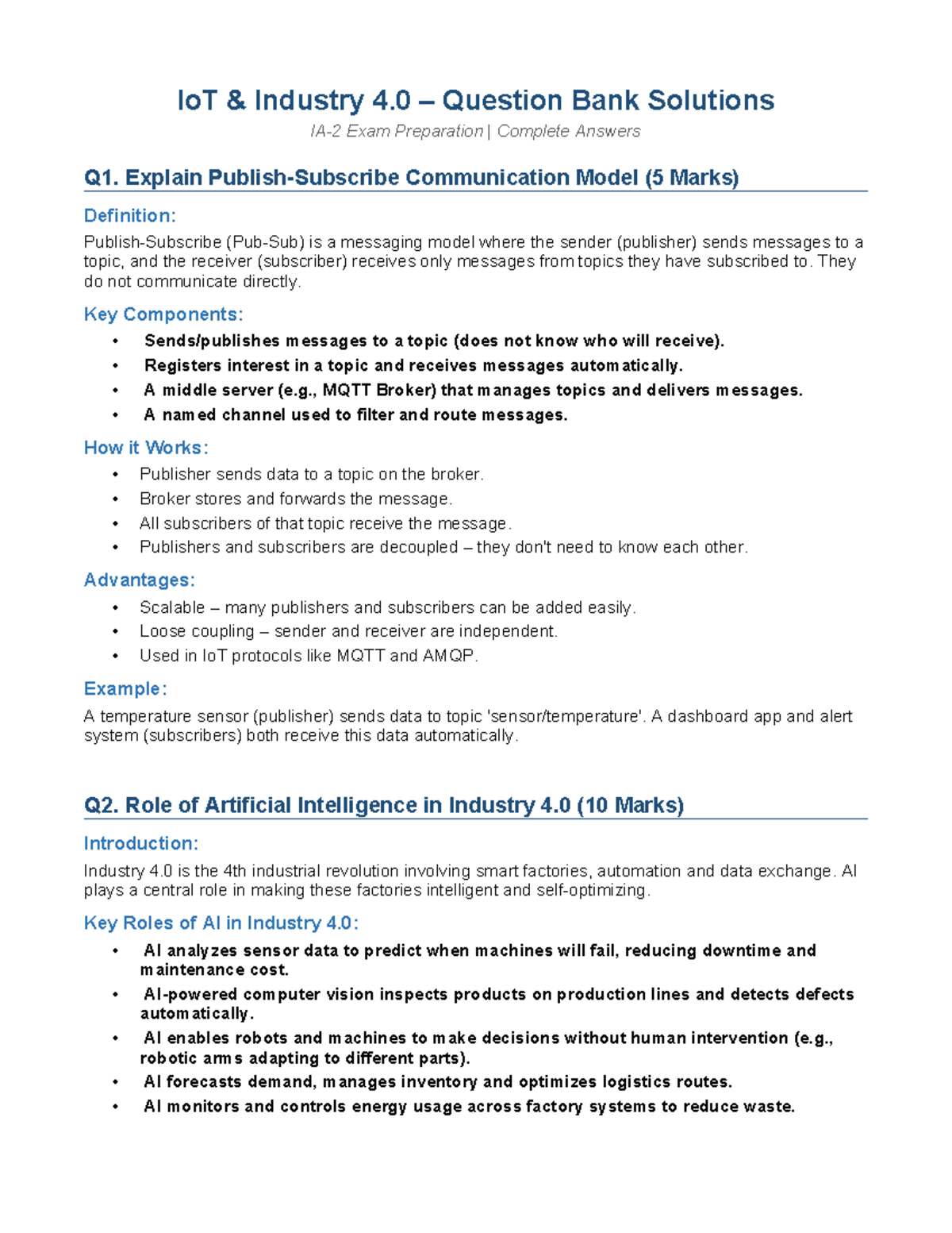 IOT IA2 Exam Prep: Complete Solutions for Industry 4.0 Questions - Studocu