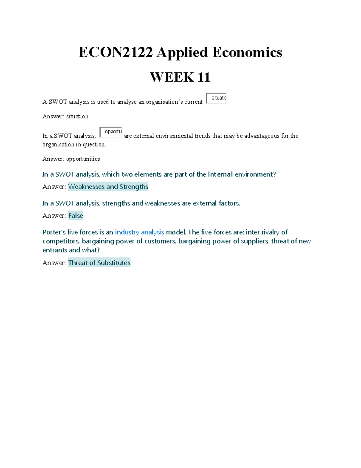 ECON2122 Applied Economics: Week 11-20 Study Notes & Exam Prep - Studocu