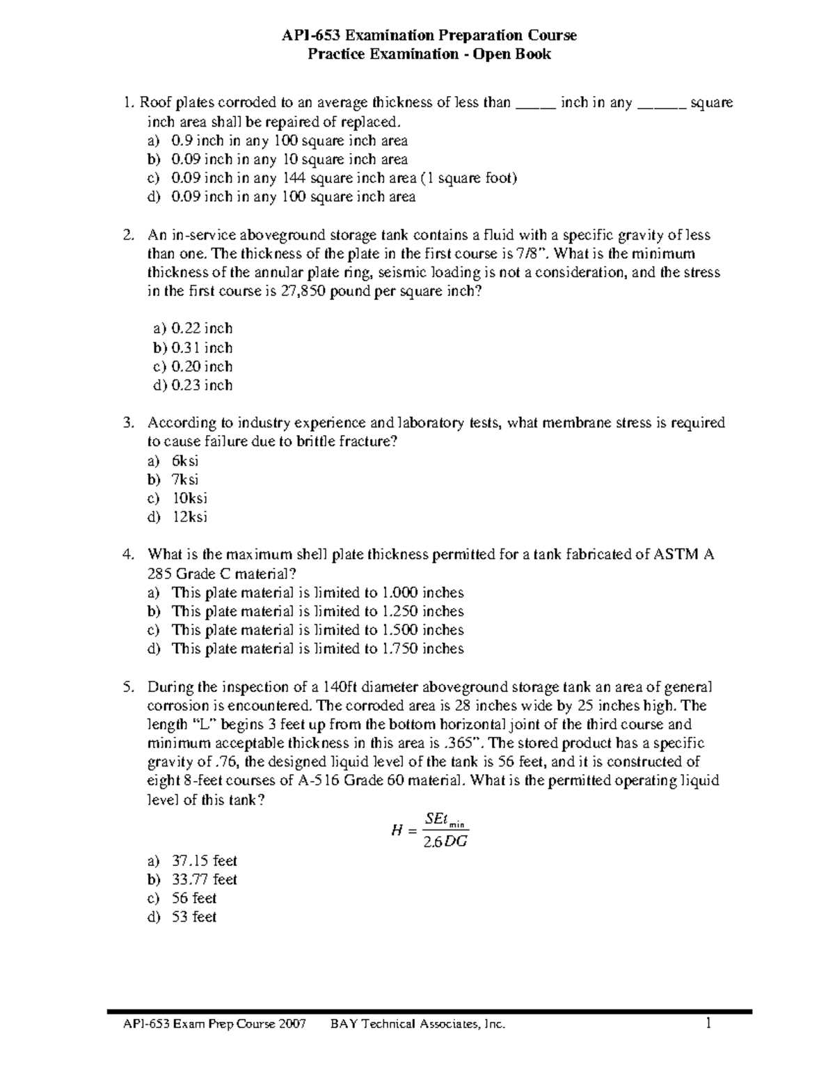 Examination Preparation Course Practice Exam Open Book 2007 - API653 ...