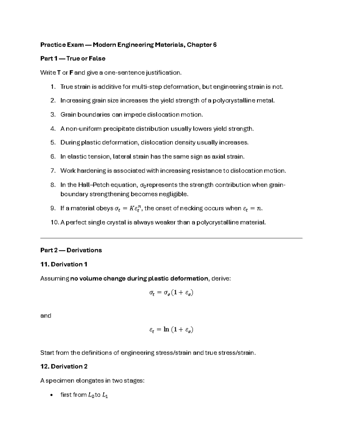 Modern Engineering Materials Exam 2 Practice Questions and ...