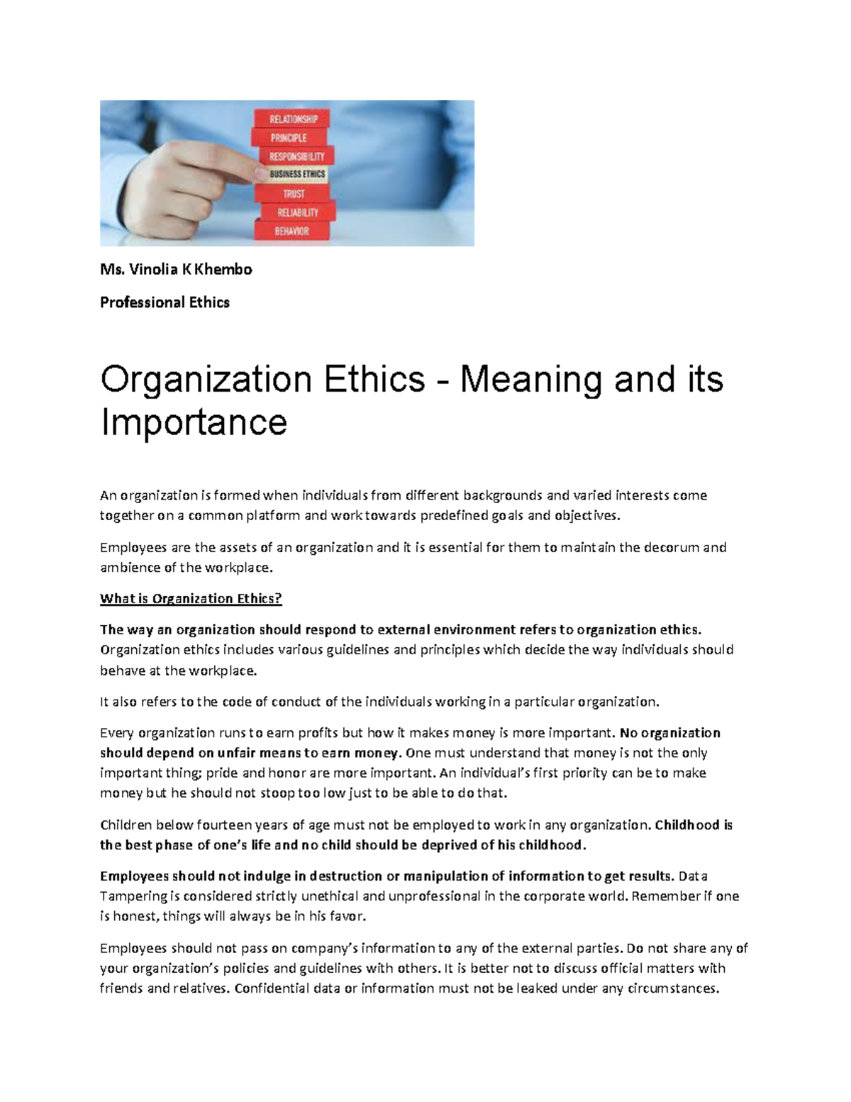 Organization Ethics (Exam Prep Notes) - Importance & Guidelines - Studocu